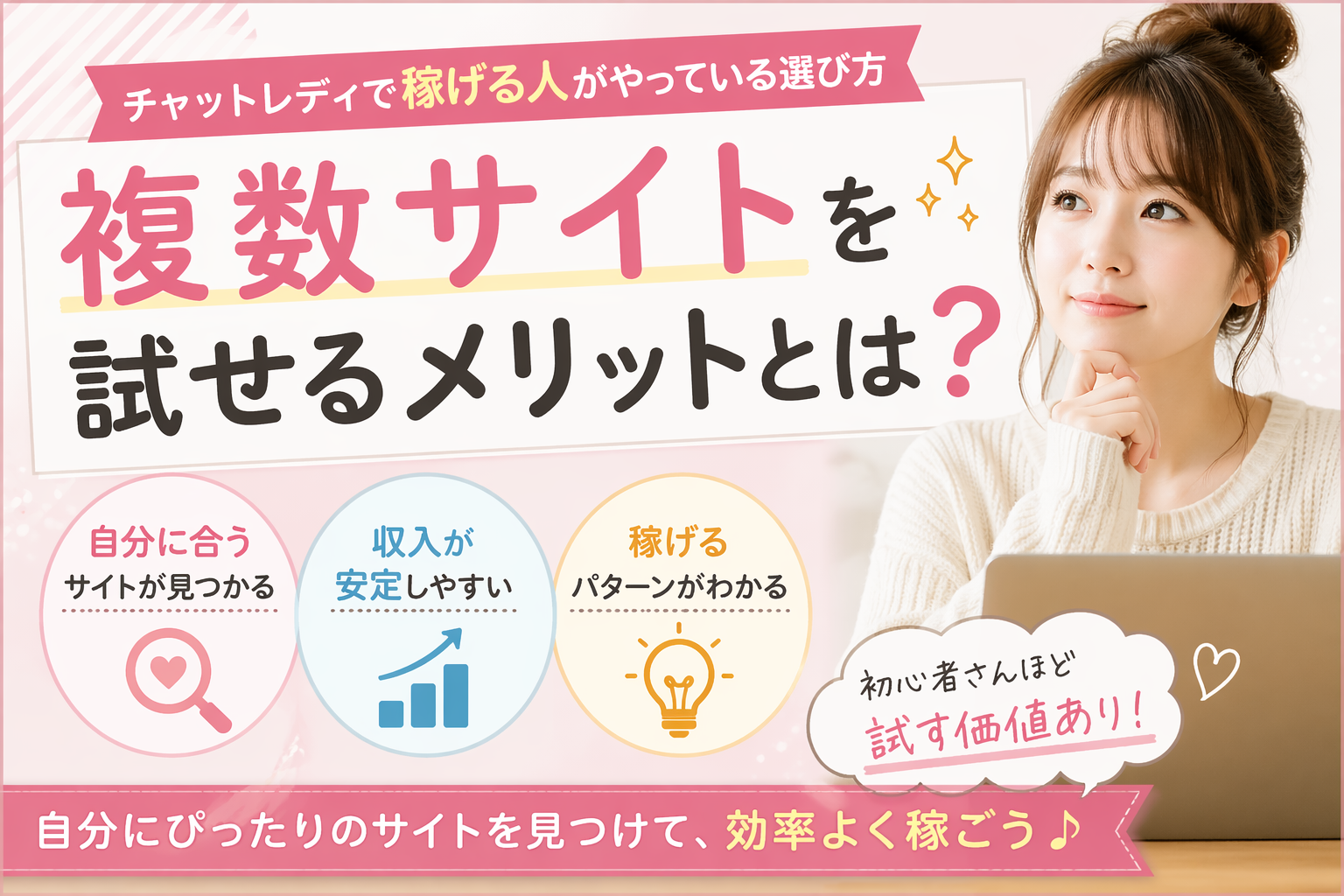 【複数サイトを試せるメリットとは?】チャットレディで稼げる人がやっている選び方